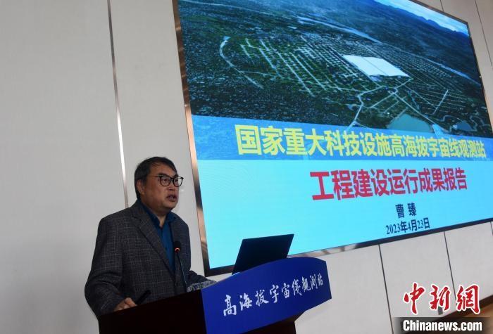 “拉索”首席科学家、中科院高能所曹臻研究员介绍大科学装置工程建设运行成果。 中新社记者 孙自法 摄