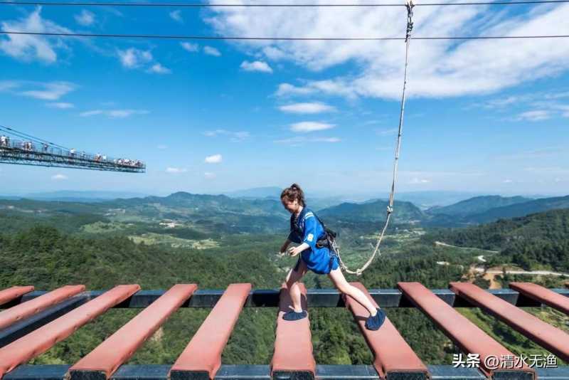 踩在通透度99.9%还会出现碎裂特效的透明玻璃上,脚下是清晰可见汹涌险峻的河道,只觉得心跳加速,头皮发麻,胆子大的就是漫步云端,胆子小的直接哭着找妈妈。