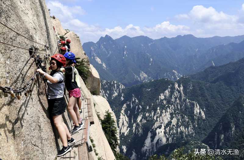 被称为天下第一险的华山,有一条700年历史的长空栈道,相传由华山派第一代宗师修建。栈道是仅有30厘米的木板,在这上面行走,每走一步都有掉下万丈悬崖的危险。
