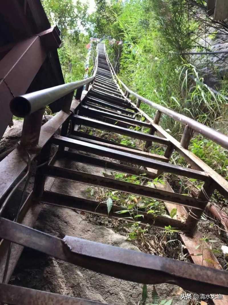 天梯一共分为三段168级,谷底就是金沙江,从山顶垂直下来的90度天梯,周围没有任何护栏,一不小心就会掉下去。
