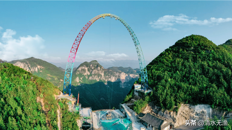 这个超级大秋千就是位于重庆云阳龙岗景区的彩虹悬崖大秋千,它地处海拔1100多米的猴子垭口,距离河面将近700米。
