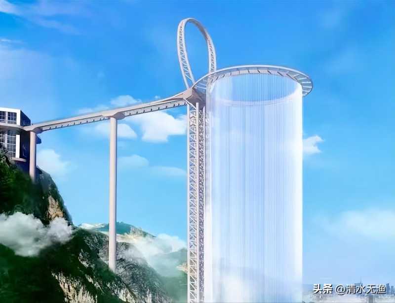 它伸出山崖368米,仅靠三根巨型立柱支撑,从远处看就像是一个巨型的球拍立在半空,离地垂直高度达500米,相当于166层楼高。