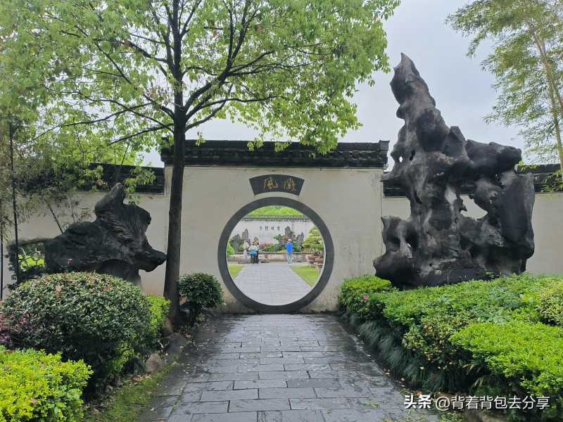 临近10点,到达鲍家花园,简单的在门口照片留念,随后步入景区,本要在检票口刷码,因4月份每周三,鲍家花园参与免费政策,工作人员招手示意,可随意进入,无需扫码,过检票之后,眼前所看到的照壁,上方有徽州人家字样,前方便是层峦叠翠的盆景景观,小而精致,进入景区给我的第一感觉,非常的有意境
