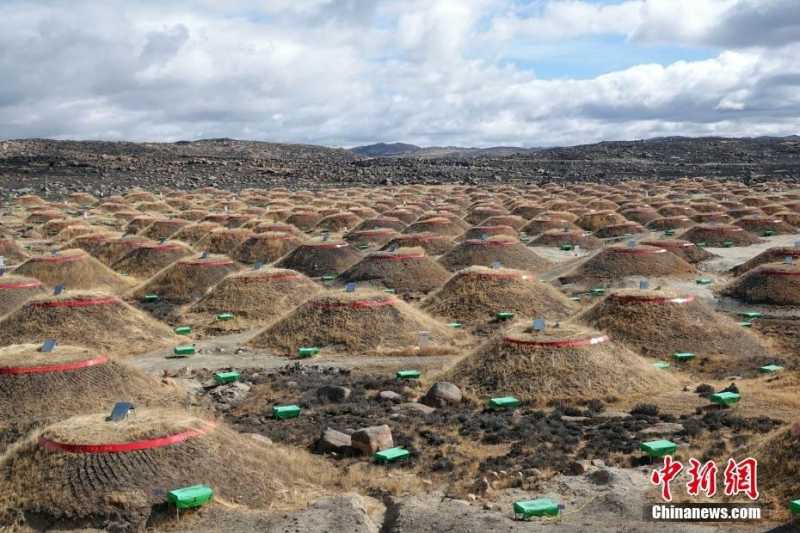 5月10日晚,中国国家重大科技基础设施——高海拔宇宙线观测站(英文缩写LHAASO,中文昵称“拉索”)顺利通过国家验收,标志着这一大科学装置开始向宇宙线起源的“世纪之谜”发起全面科研冲击。图为国家验收之前的4月22日,四川稻城海子山,大科学装置“拉索”的探测器。中新社记者 孙自法 摄