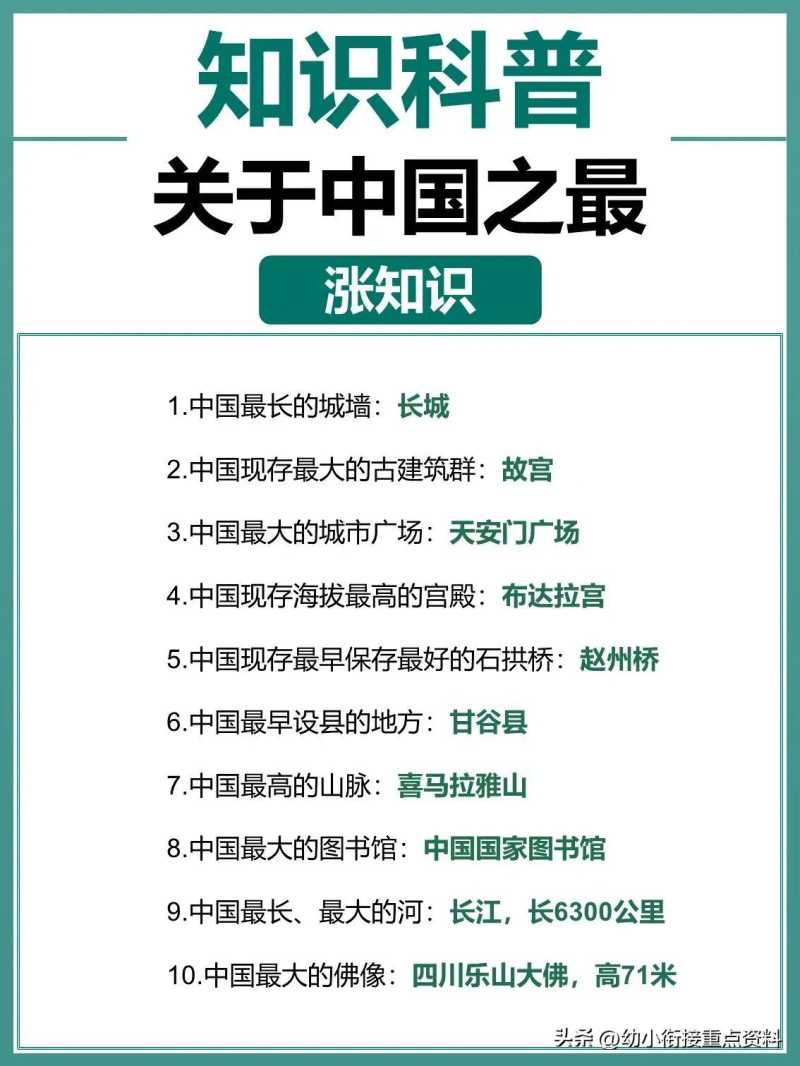 - 🌹一定给你家的孩子收藏起来: 中国之最