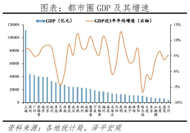成熟型优化功能布局,发育型加强一体化建设,起步型增强经济实力。第一,成熟型都市圈整体经济水平领先,多位于长三角和珠三角地区,且中心城市与部分周边城市差距持续明显缩小,应优化功能布局。该类都市圈均位于经济率先发展的出口基地长三角、珠三角地区,圈内周边城市均受益于中心城市制造业产业链的外溢,起步较早、经济发达。长三角、珠三角地区各大都市圈已经连绵成片,不少都市圈区域相互重叠,内部经济联系紧密的长三角、珠三角城市群已初具雏形。比如,上海、苏锡常、杭州、南京、宁波、合肥都市圈组成了长三角连绵区;广州、深圳、珠西、汕潮揭、湛茂组成珠三角连绵区。成熟型都市圈应优化功能布局,重视中心城市过度集中的人口与产业的疏解,继续提升基础设施、公共服务同城化水平,在治疗“大城市病”的同时建设各功能组团有序分工、紧密协调的大都市圈。第二,发育型都市圈整体经济实力较强,但中心城市对周边城市的发展带动尚不足,应重点加强一体化建设。发育型都市圈尽管经济基础和发展势头较好,但周边城市尚未缩小与中心城市发展差距。随着经济实力的进一步提升及产业结构的进一步优化,发育型都市圈有望向成熟型都市圈过渡。该类都市圈应重点加强圈内一体化建设,加快形成城市间交通一体化网络,打破阻碍同城化发展的行政壁垒,增强中心城市对周边城市的发展带动作用,同时避免中心城市的功能过度集中。起步型都市圈整体经济实力不够强,中心城市和周边城市的经济联系较弱,应重点增强整体经济实力。第三,起步型都市圈中心城市经济实力尚不足以影响稍远的周边地区,经济上较为孤立。起步型都市圈应重点增强整体经济实力,尤其是中心城市的经济实力,同时补齐基础设施建设等领域的短板。当区域经济实力和中心城市对周边的辐射能力提升后,起步型都市圈有望转变成发育型都市圈。