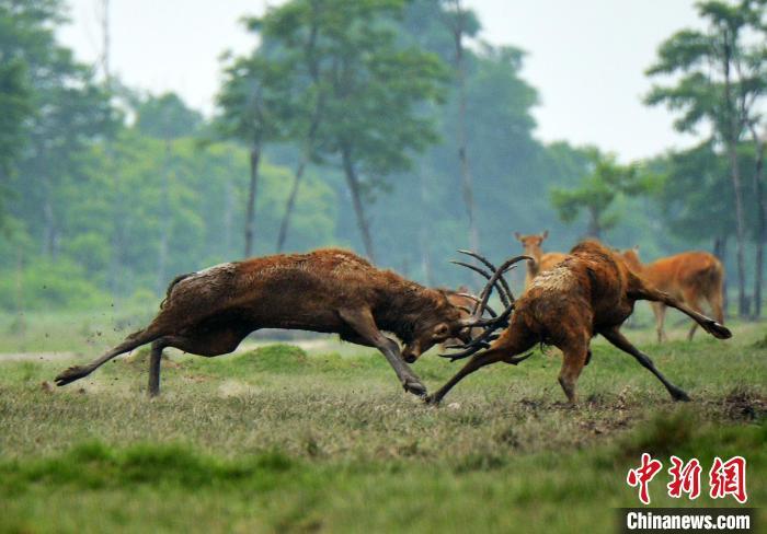 麋鹿争霸。(资料图) 杨国美 摄