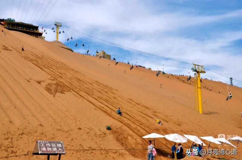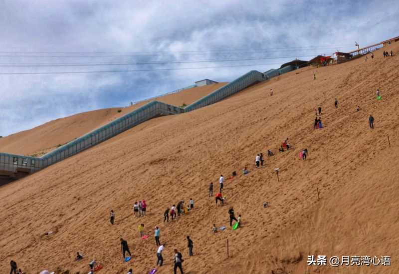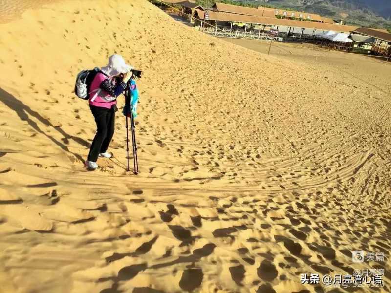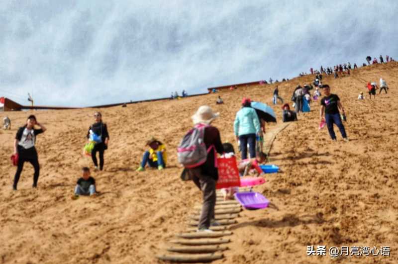 来到天下第一天然滑沙场,为体验沙场乐趣与拍摄,我与闺蜜决定放弃电梯上去而爬沙坡。