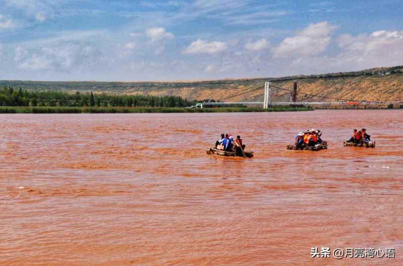 我俩进景区大门,"天下黄河第一漂"的金字招牌映入眼帘,只见滔滔黄河上,游客乘古老的渡河工具羊皮筏子,艄公唱着宁夏民歌,带领游客漂流渡向彼岸。