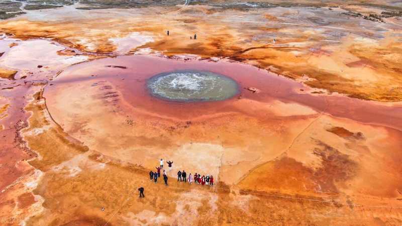艾肯泉,茫崖市莫合尔布鲁克草原深处的一处地质奇观,因为富含矿物质,喷涌了上千年的地热喷泉,周围矿物质含量过高,呈现出各种颜色,空中俯瞰,有奇特的瞳孔造型,仿佛一只镶嵌在大地上的眼睛,被形象地称之为“”恶魔之眼”。