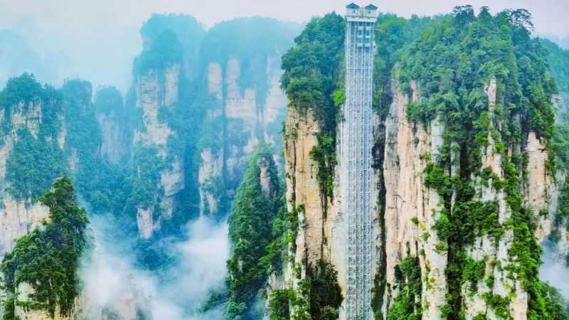 No.4 天下第一梯百龙天梯只要88秒就可以登顶,可以看见张家界群峰,非常的震撼。