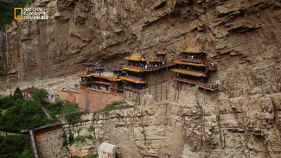 中国现存的建于悬崖绝壁上最早的木结构建筑群:悬空寺