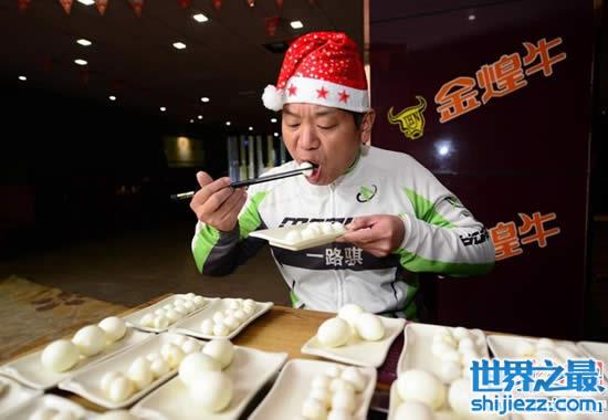 头戴圣诞帽的湖南大胃王潘一中来到长沙一自助餐厅挑战“圣诞大餐”,在37分钟内狂吞150个鹌鹑蛋和10个鸡蛋。潘一中惊人的食量让店内服务员看得目瞪口呆。