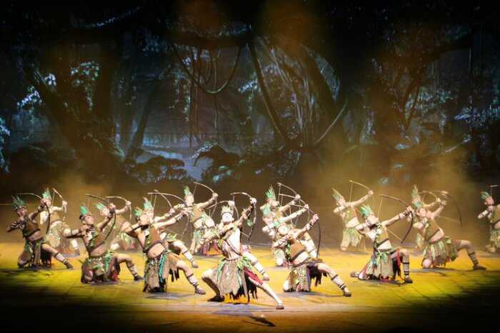 九寨千古情是在四川九寨沟举行的一场演出,以九寨沟的自然美景为背景。演出中,观众可以欣赏到藏族的舞蹈和音乐,同时感受到了一对少年男女在九寨沟中的纯真爱情。