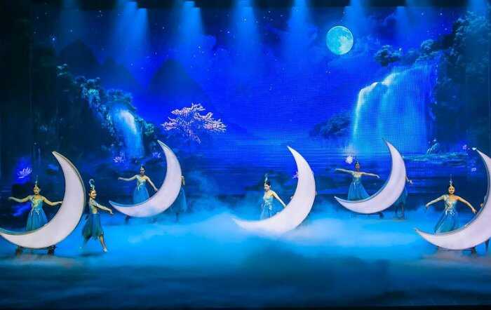 明月千古情是在江苏扬州举办的一场演出,以扬州的历史文化为背景。演出中,观众可以欣赏到扬州的古建筑和传统文化表演,同时感受到了一对扬州少男少女之间的深情爱恋。