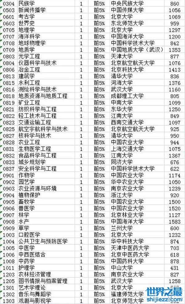 2017中国最好学科排名详情