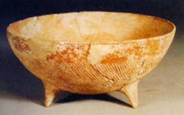 中国最早的彩陶。大地湾一期文化出土的三足钵等200多件彩陶,是我国迄今为止发现的时间最早的一批彩陶。这批距今约8000年的紫红色彩陶,图案虽还不太完整,却将中国彩陶制造的时间上推了1000年,并以不容置疑的事实说明,西北黄土高原地区就是中国彩陶的起源地。