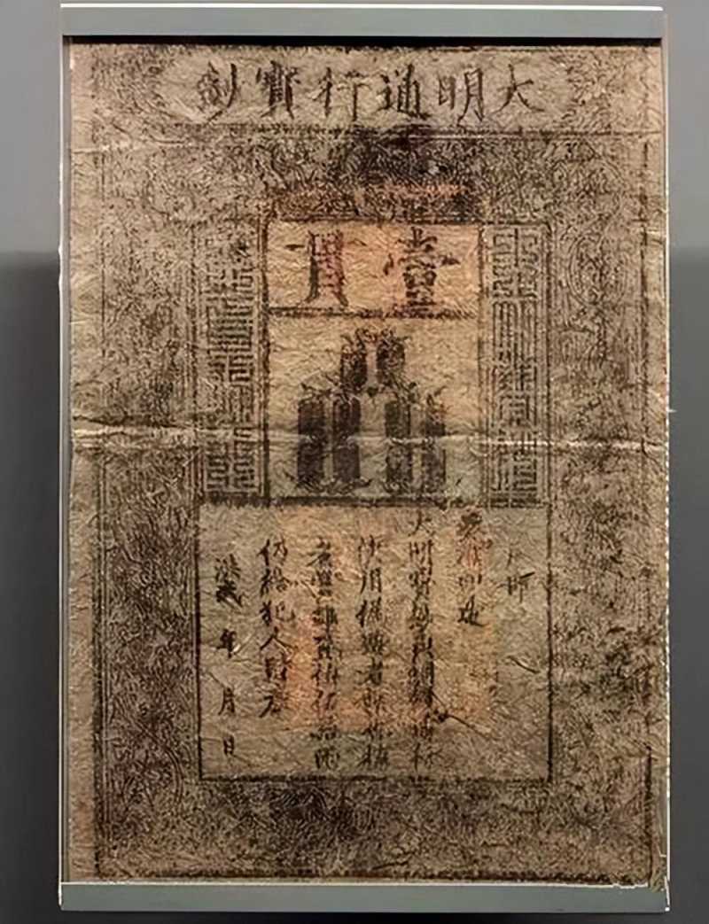 “明代大明宝钞”是世界上迄今票幅面最大的纸币,票幅面积为338X220毫米。北京首都博物馆文物展。