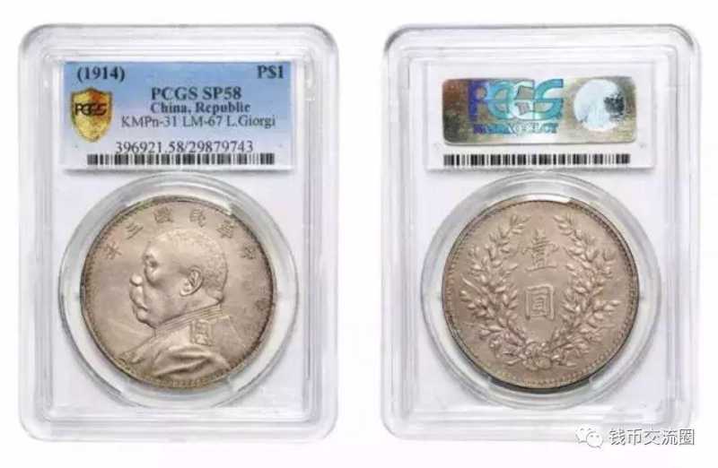 ↑袁世凯像民国三年壹圆签字 PCGS SP 58