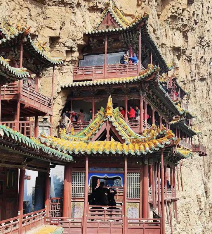 位于山西省大同市浑源县东南郊恒山脚下,现为国内保存最完好的高空木构摩崖建筑,为北魏时期所建,距今已有一千五百年的历史,是恒山十八景中的第一胜景,国内仅存的佛-道-儒三教合一独特的庙宇,寺庙建于翠屏峰的峭壁间,表面上只是由十几根碗口粗的木柱支撑,其实有的木柱根本不受力,从而使悬空寺外貌惊险-奇特-壮观,以如临深渊的险峻而著称,悬空寺共有殿阁40间,如果游玩庙宇的话,只能单行通道,不可逆行,由于空间狭小,一定要注意安全,不要过于靠近边缘栏杆,老年人游玩会比较辛苦的。