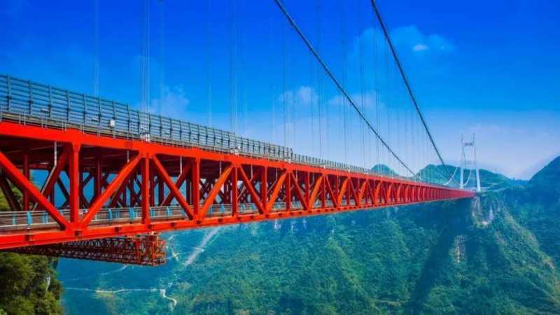 湖南最长的悬索桥:矮寨大桥,全长 1073.65 米,创造了四项世界第一。这座悬索桥位于湖南省湘西土家族苗族自治州吉首市矮寨镇境内,是世界上最高的悬索桥之一。它的建成不仅为当地的交通带来了便利,也成为了一道亮丽的风景线。