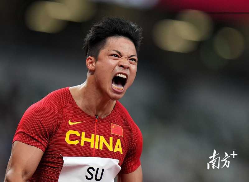2021年8月1日,苏炳添在东京奥运会男子100米半决赛后呐喊庆祝。新华社资料图