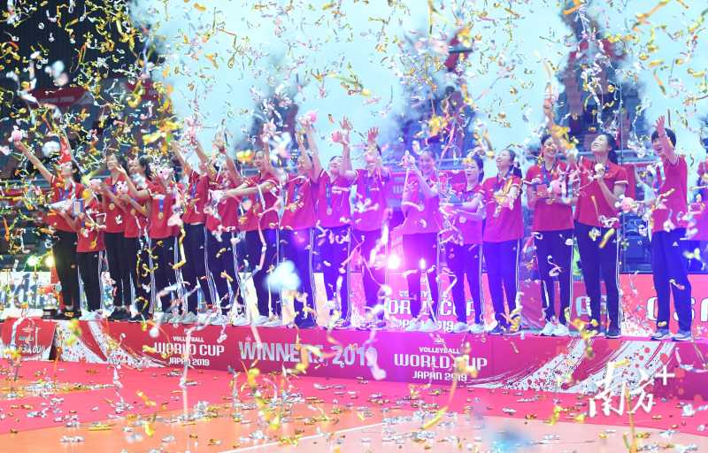 2019年9月29日,2019年女排世界杯赛颁奖仪式在日本大阪举行,中国队在本届比赛中以十一连胜的战绩夺得了冠军。新华社资料图