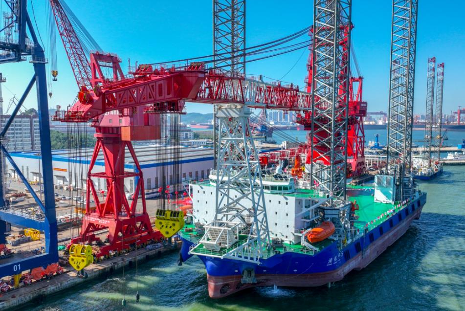 据悉,该轮由天津港航工程有限公司投建,可满足世界最大26兆瓦及以上风机的施工作业要求,同时携带2套20MW风机的能力,具备风机运输、储存、安装一体化作业和无限航区航行能力。交付后,可在深远海域开展施工作业。