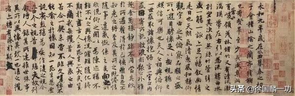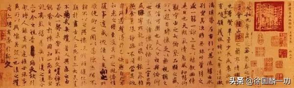 《砥柱铭》是“宋四家”之一北宋著名书法家黄庭坚的手书作品,是他散落民间的最重要的书法瑰宝之一。这幅手卷长达11米,画心长8米,内容是黄庭坚生前最为推崇的唐代宰相魏征写的《砥柱铭》,全文600多字。卷上有宋代贾似道、明代项元汴直至清代民国藏家的大量题跋和钤印。