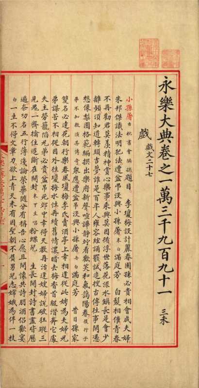 - 最早的百科全书:《永乐大典》编纂于明朝永乐年间,是中国古代最大的一部类书,汇集了古今图书七八千种,内容涵盖经、史、子、集、天文地理、阴阳医术、占卜、释藏道经、戏剧、工艺、农艺等各个领域。