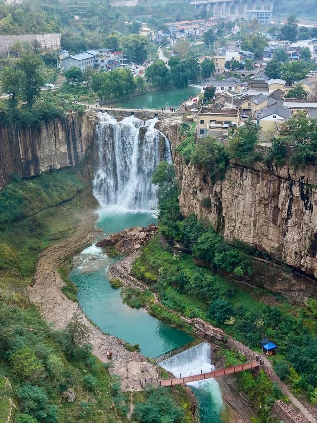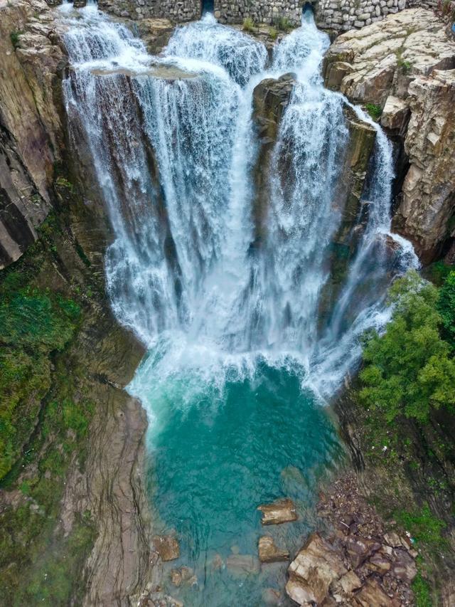 太行山里的天脊山天泉瀑布,落差高达346米,是华夏第一高瀑,水流从高空倾泻而下,场面十分壮观。