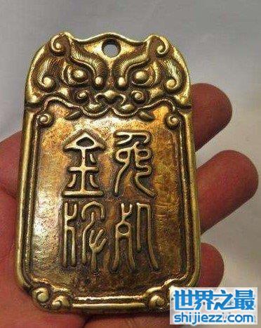 听说,流传至今的免死金牌只要5块。这5块之中,最早的免死金牌是唐昭宗乾宁四年(公元897年)赐予越州钱镠的。现在这块免死金牌被保存在我国国家博物馆,也就是天安门广场的国家博物馆。