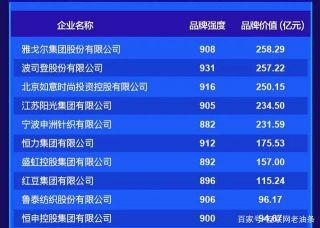 中国纺织服装行业品牌代价排行