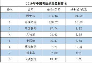 中国本土男装品牌利润排行榜