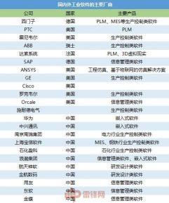为了能更直观地论述海内外工业软件及次要厂商,雷锋网专程对这一范畴的企业、所属国家和次要产物作了汇总,详见下图: