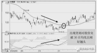 上下背叛买入法中的“上”是指上方的挪动均匀线,“下”指的是下方的MACD目标。“上下背叛买入”是指在股价的上涨历程中,出现了横盘或下跌,此时,5日挪动均匀线与MACD目标的活动偏向发生背叛。发作背叛的征象次要有两种。