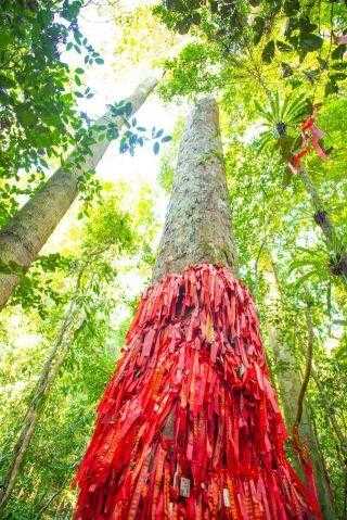 望天树在本地被视为一种“福树”,在数十根望天树里,有一两根被作为旅游祈福用的树,上面挂满了人们的希望成为了望天树景区里很特其它一道景致。