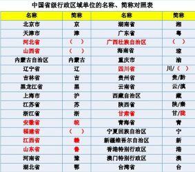 (3)触及各个省分的简称成绩:一个省级行政区的简称平日是从省的名字中挑一个字,好比北京的简称是“京”,再如黑龙江省的简称是“黑”、吉林省的简称是“吉”、辽宁省的简称是“辽”。但有些省分起名对照非凡,需求重点存眷: