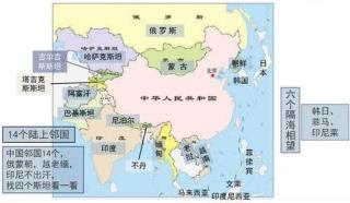 (3)与国家隔海相望的国家:与国家陆地不交界,可是隔着一片海能够看到,好比在山东半岛隔着黄海能够看到韩国、隔着海也能够看到菲律宾。留意: 详细隔海相望的国家无需影象,可是数字“6”需求记清。