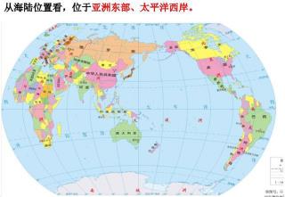 ②陆地部份:图上的太平洋是天下最大的大洋,国家位于太平洋的西岸。