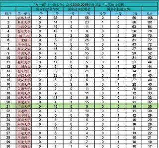 最终我们来看一个重量级的排行榜,在2000至2019年高校取得国度科技三大奖排行榜中,中山东大学学位居天下第20位,作为一所综合性大学,这个体现曾经很不错了。
