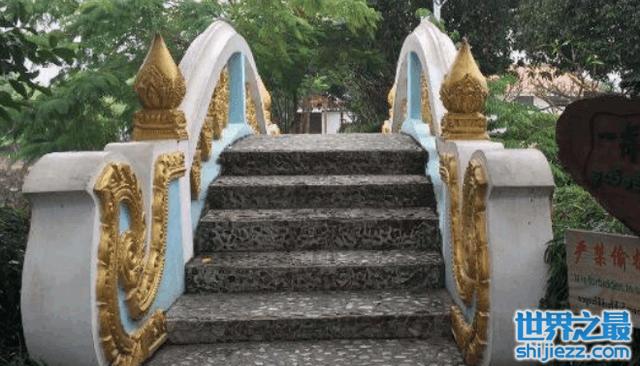这些玉石被铺在一座桥上,这座桥金色和淡蓝色交相辉映,有浓浓的缅甸风情。因为缅甸人最钟爱的数字是7,全国上下无论是在省份的数量上,甚至是在国名的生日上,都非常喜欢用7这个数字,所以这桥上镶嵌有7777块翡翠。