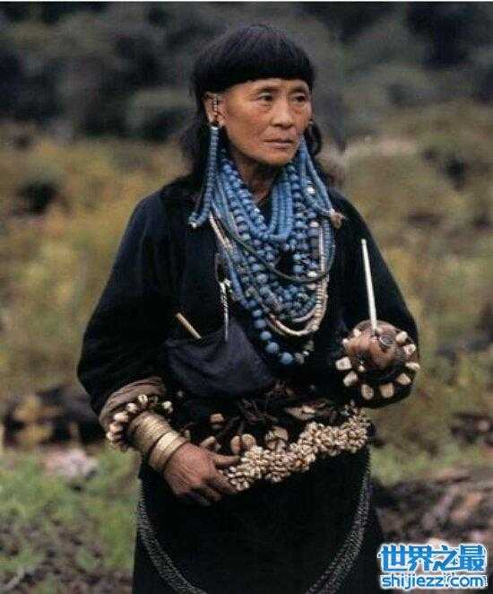那就是关于妇女们的服饰,一般都是上身是土布衣群,他们还比较习惯在外面来过上一条草裙,这样的话就可以退里面的布裙,起到一个保护的作用。而且珞巴族的妇女们还非常重视身上所佩戴的装饰品,比如说铜质的或者是银质的手镯还有戒指以及以有好几十的那种蓝白颜色相间的项链,他们腰部的衣服上经常会最有很多油海贝串成的圆球,