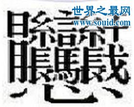 读音zh&egre;ng(64划),由4个繁体的“興”组成, 《五音篇海》音政,收入自《中文大辞典》,并列中国字典收录笔画最多的汉字。