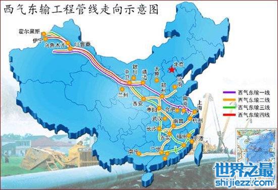 西气东输的管道由新疆轮南一直经过甘肃、宁夏、陕西等七个省区到达上海,为上海提供了丰富的天然气资源。西气东输作为我国新世纪四大工程之一,使西部地区增加了新的经济增长点,推动当地的产业结构和能源结构进行调整,东部的天然气用于工业方面,减少了对环境的污染,有利于长久的发展。