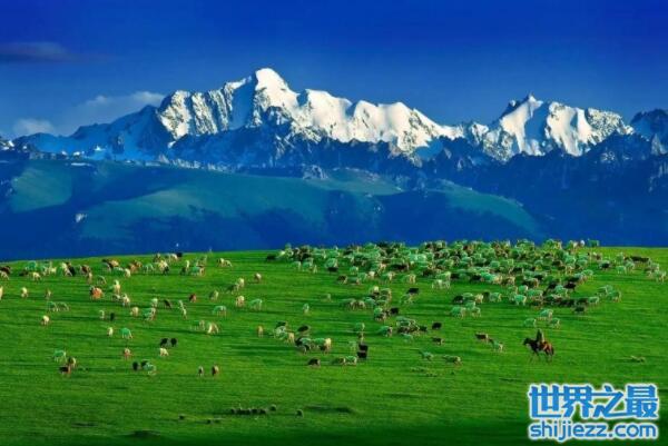 在美丽的天山下,有一片面积广袤,水源充足,风光旖旎,水草丰美的牧场,我们习惯称其为天山牧场。与呼伦贝尔大草原不同的是,天山牧场海拔较高,平均海拔都在4000米以上,所以在气候上,呈现出典型的高原高山气候。天山牧场是隶属于新疆的主要天然放牧场,依托于天山山脉优秀的自然资源,有着水源充足、面积广大、牧草繁茂等特点,著名的伊犁马、新疆黄牛、新疆细毛羊、巴里坤马等优良品种均生长于天山草原上。