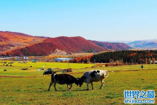 这是由红星集团根据欧盟标准建造的一处高标准现代化的有机牧场,地处冰雪旅游城市之一的牡丹江市郊,位于世界黄金奶源带上,集供给高品质有机奶源和生态观光于一体,牧场的森林木概率高达60%,适合生产绿色有机的饲料和食品。