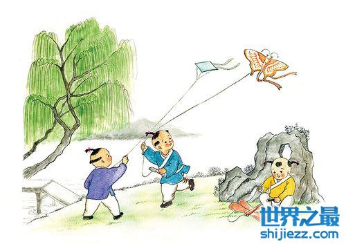 最早的风筝并不是玩具,而是用于军事、通讯上。唐代晚期,因为有人在风筝上加入了琴弦,风一吹,就发出像古筝那样的声音,于是就有了 “风筝”的叫法。风筝是用细竹条作骨架,贴上鲜艳的纸或丝绸,再画上画。到了宋代,清明节放风筝就成为一种人们喜爱的活动。