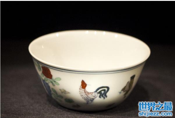 这是汉族传统陶瓷的艺术珍品,是皇帝的御用酒杯。该器物口宽底瘦,瓶身印有生动的图画,在2014年的拍卖会上,以2.5亿港元竞拍拿下,创下中国瓷器在香港拍卖的最高纪录。