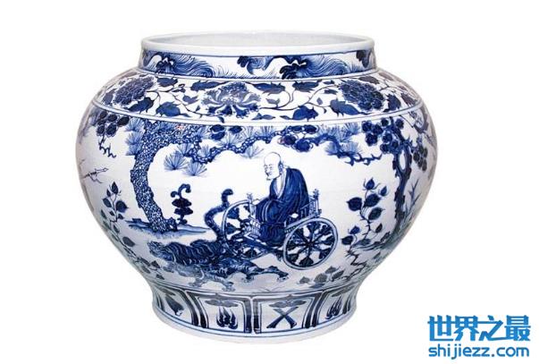 这是元代青花瓷器,整体看起来颈短身宽,瓶身印有鬼谷子下山的故事,生动逼真。在2005年,以1400万英镑拍出约人民币2.3亿,创下了当时中国艺术品最高拍卖记录。